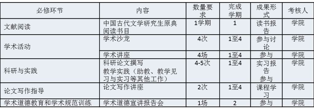 中国古代文学学术学位硕士研究生必修环节设置要求