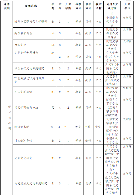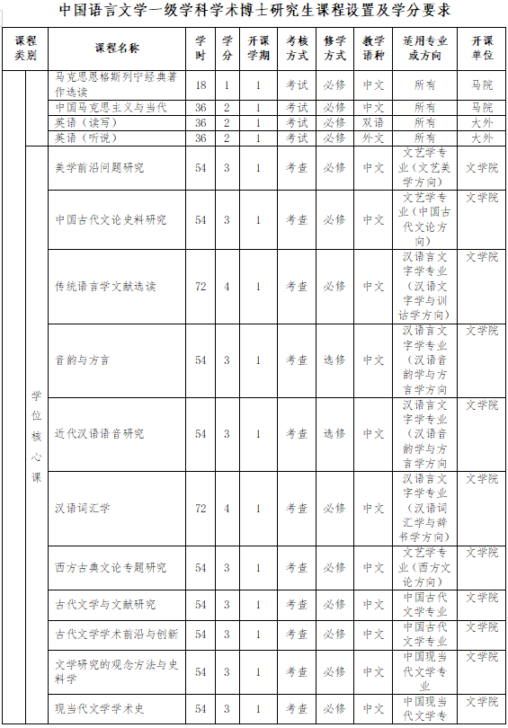 2024年修订:中国语言文学一级学科博士研究生培养方案