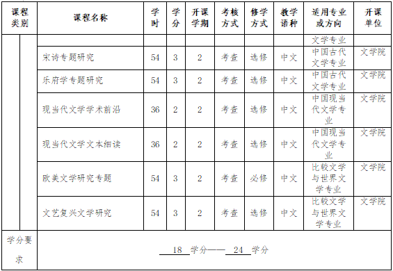 学位专业课,从大众文化研究、马克思主义文论专题研究、先秦文化与美学专题研究、文论前沿话题研究4门选修课中任选1门。