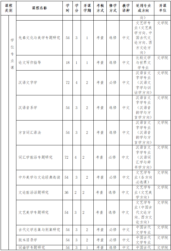学位专业课,从文艺美学专题研究、先秦文化与美学专题研究、大众文化研究、马克思主义文论专题研究4门选修课中任选1门。