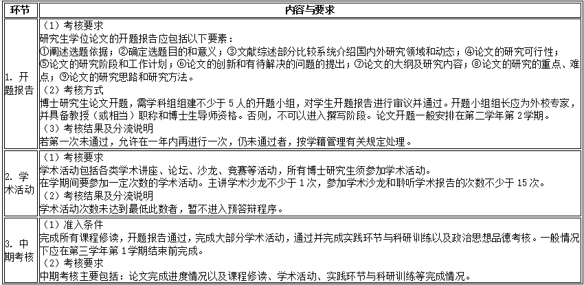 1.总体要求。全面坚实地把握本学科的基础理论、专门知识以及学科发展历史和前沿动态,应充分了解和熟练掌握本学科的研究范式和研究方法,学术视野开阔,能在前人相关研究的基础上开展独立、深入、富有创新意义的学术研究工作。